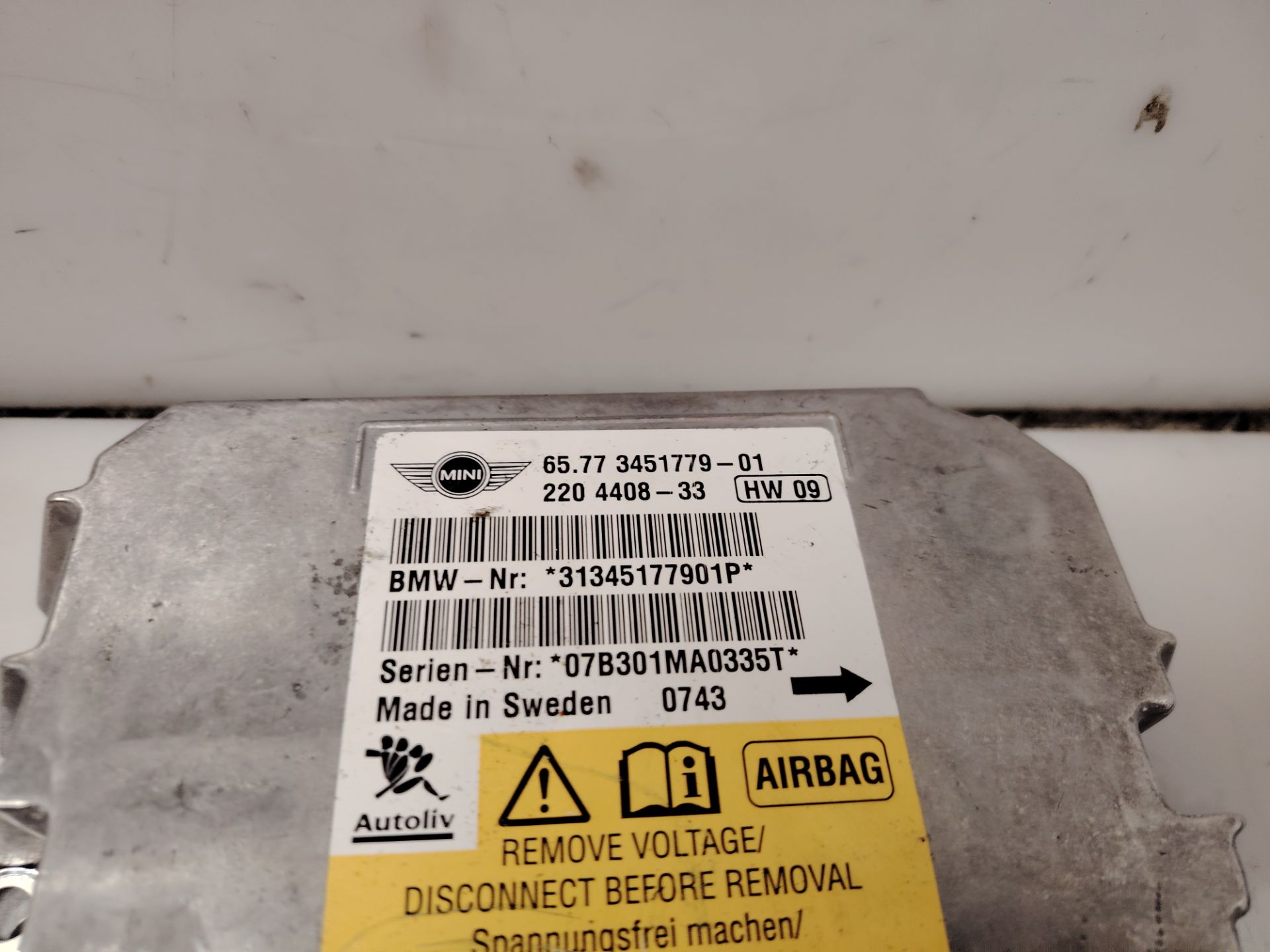 CENTRALITA AIRBAG de un MINI MINI (R56) con motor N12B16A del 2007.